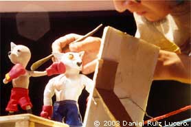 Animación de un golpe. En cada pose nueva habia que cambiar la forma de la plastilina.